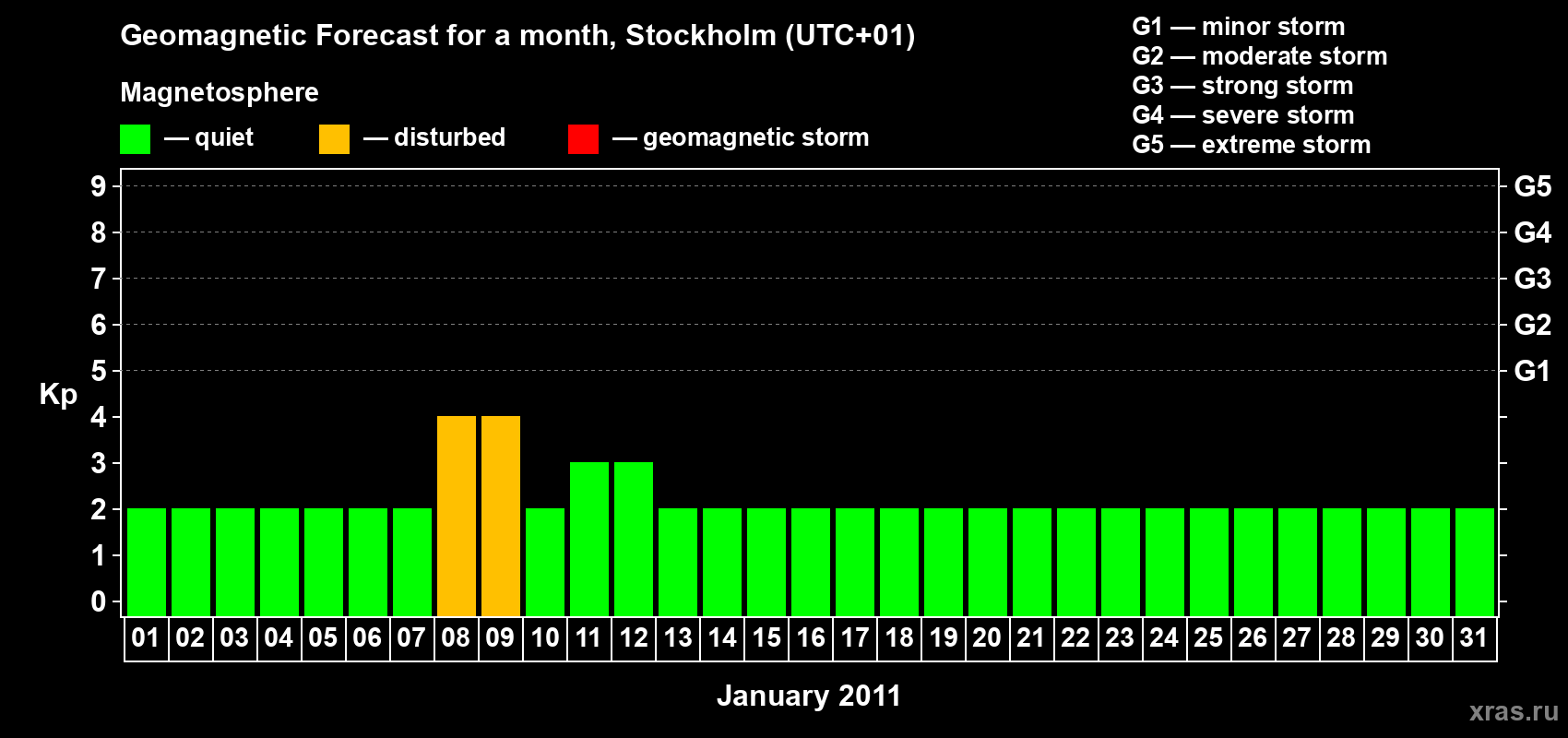 Geomagnetic storm forecast in Stockholm for Jan 01, 2011