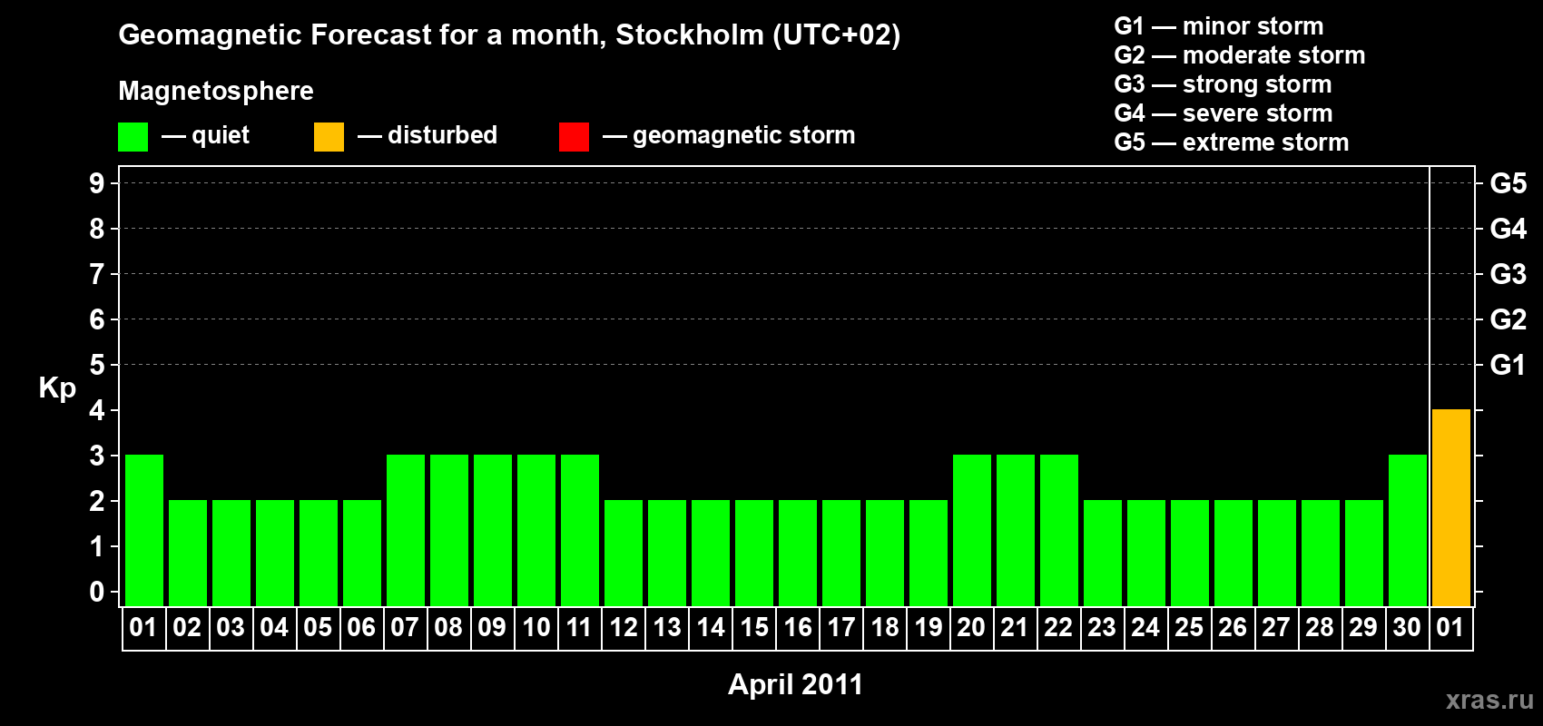 Geomagnetic storm forecast in Stockholm for Apr 01, 2011