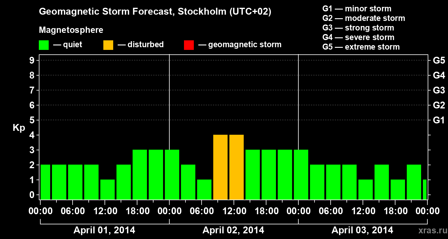 Geomagnetic storm forecast in Stockholm for Apr 01, 2014