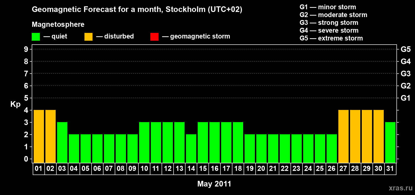 Geomagnetic storm forecast in Stockholm for May 01, 2011