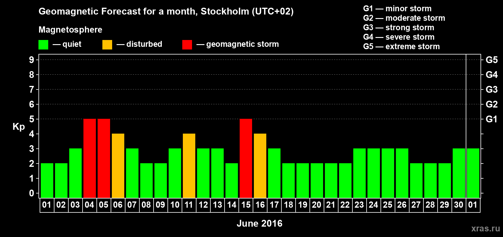 Geomagnetic storm forecast in Stockholm for Jun 01, 2016