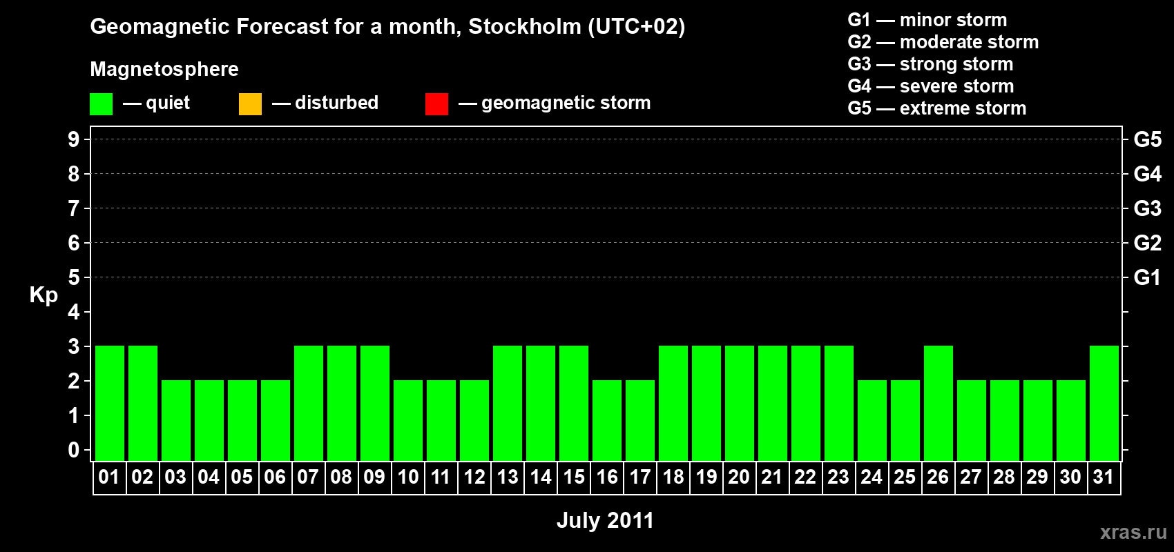 Geomagnetic storm forecast in Stockholm for Jul 01, 2011