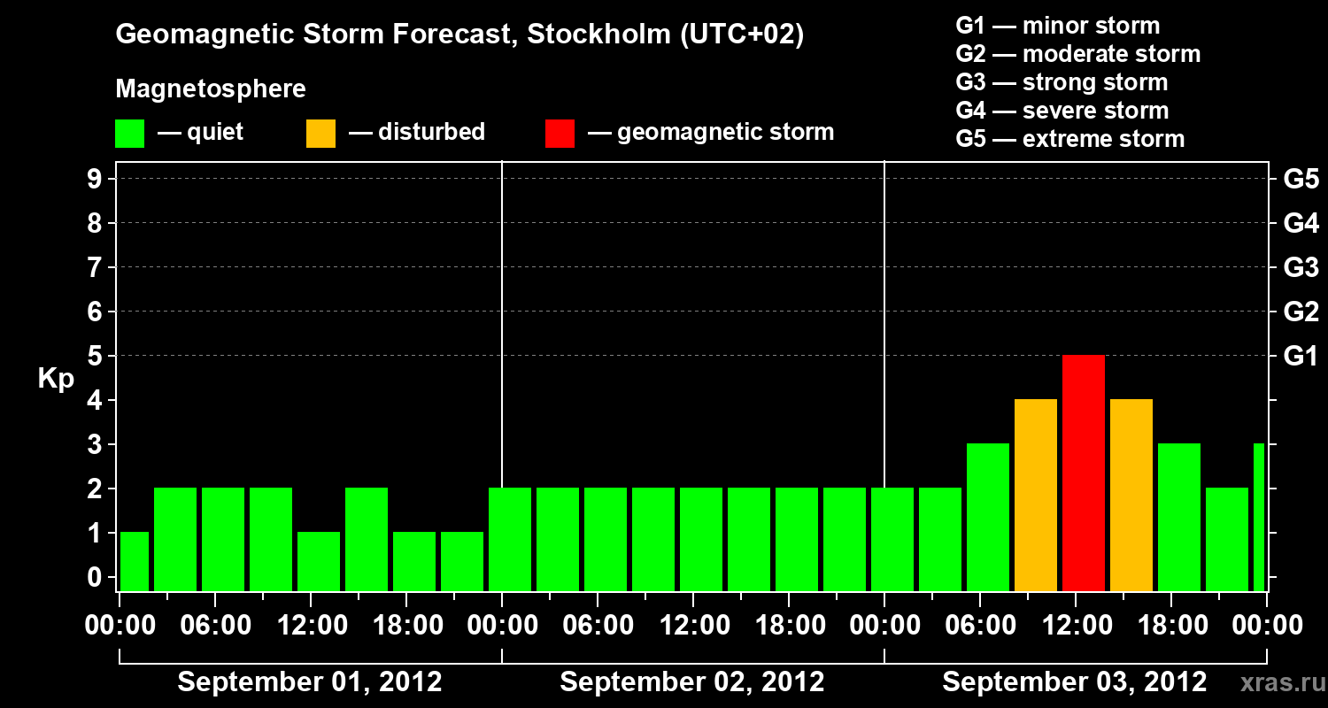 Geomagnetic storm forecast in Stockholm for Sep 01, 2012
