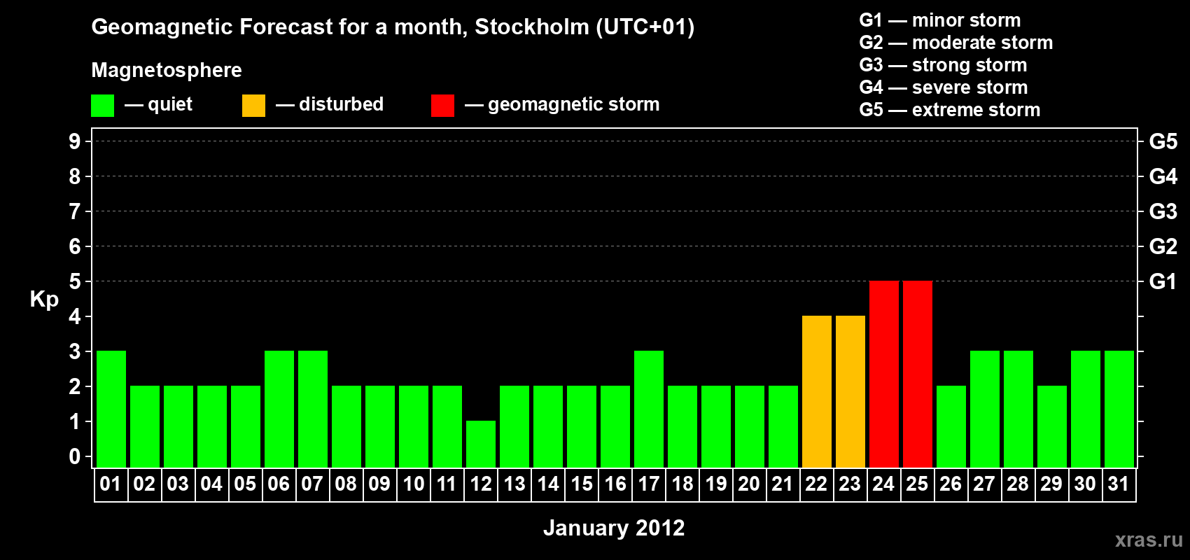 Geomagnetic storm forecast in Stockholm for Jan 01, 2012