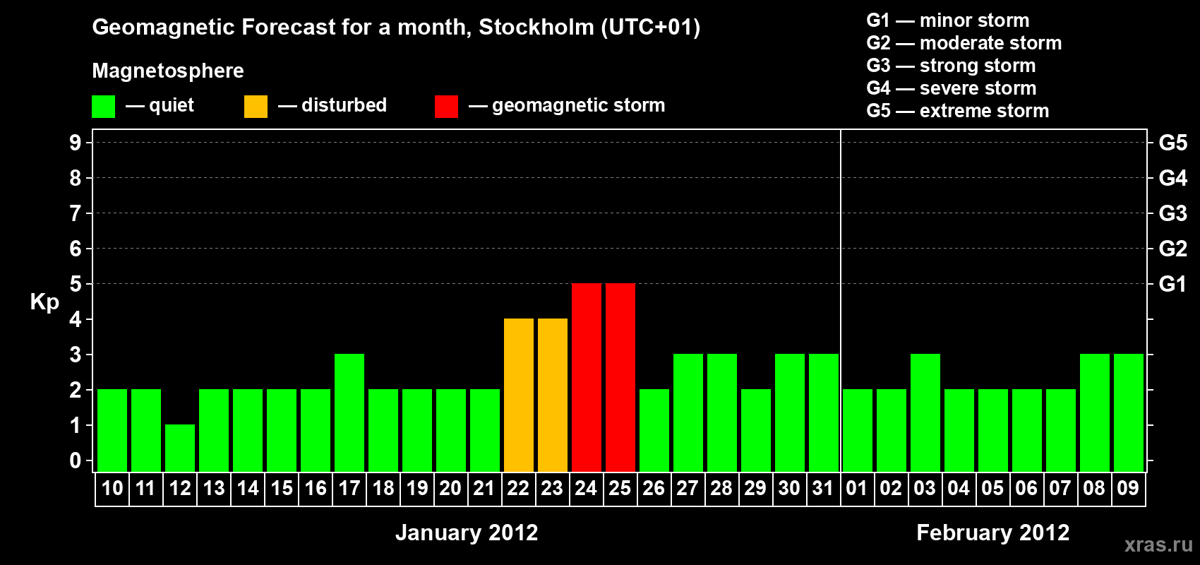 Geomagnetic storm forecast in Stockholm for Jan 10, 2012