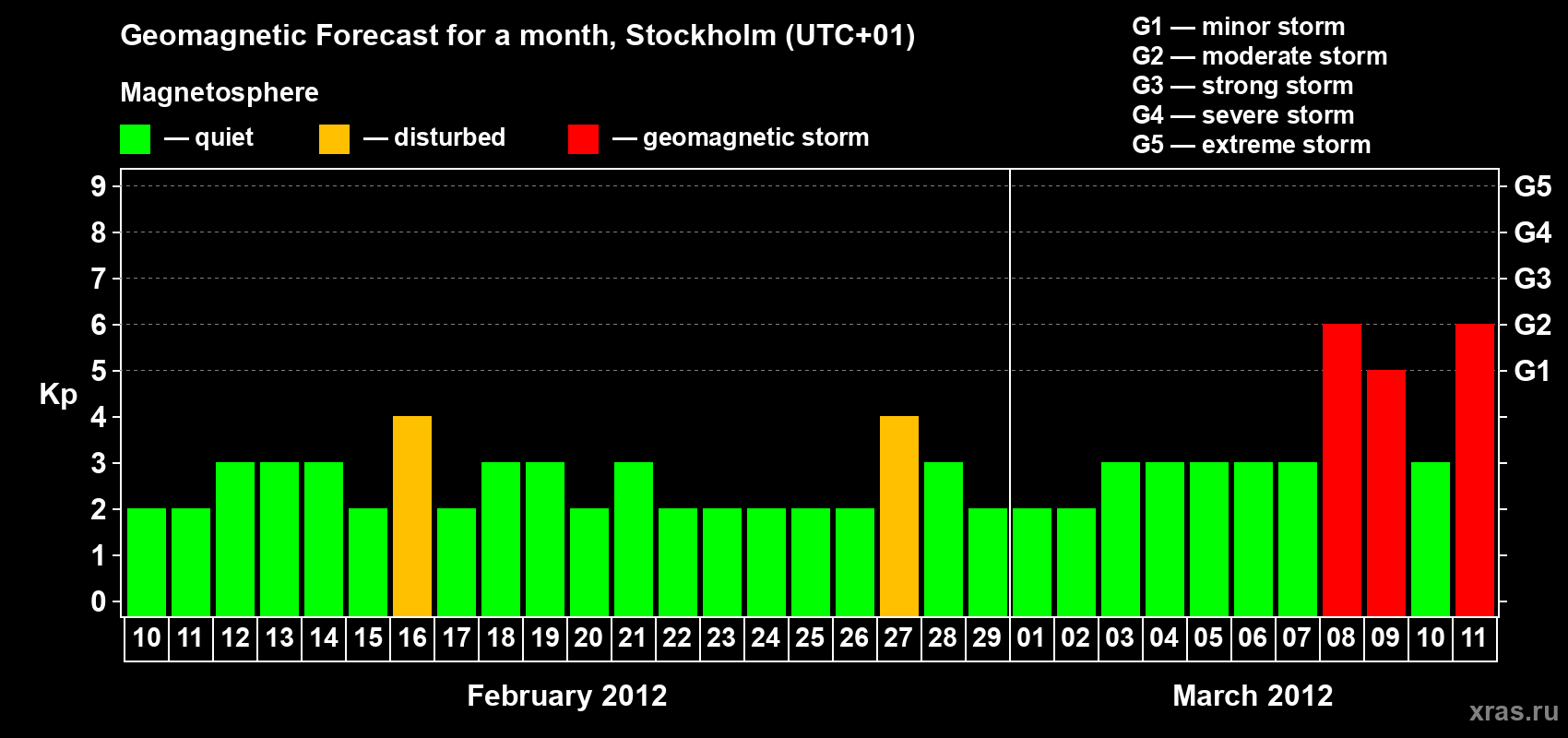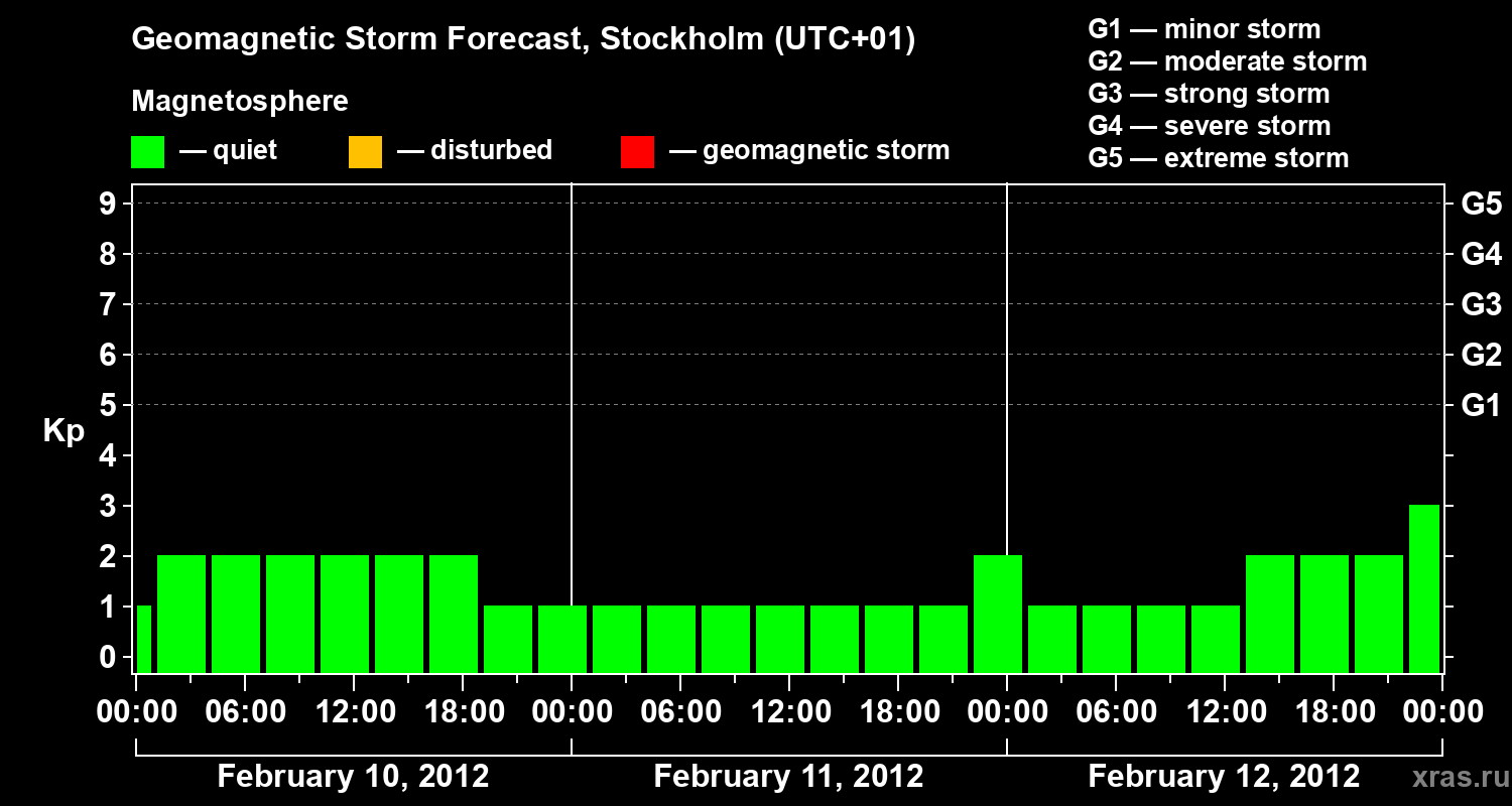 Geomagnetic storm forecast in Stockholm for Feb 10, 2012