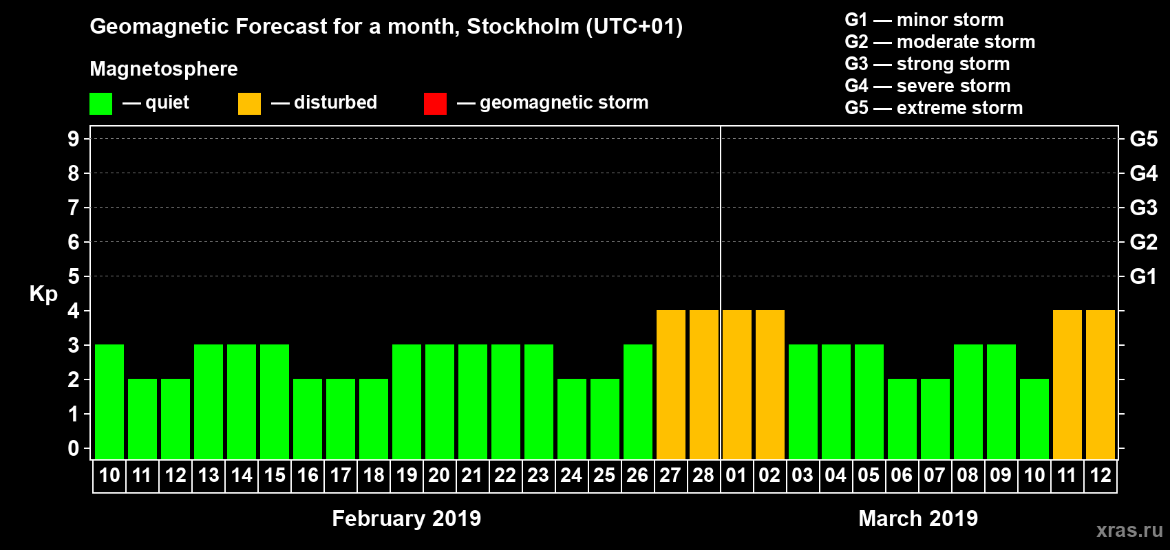 Geomagnetic storm forecast in Stockholm for Feb 10, 2019