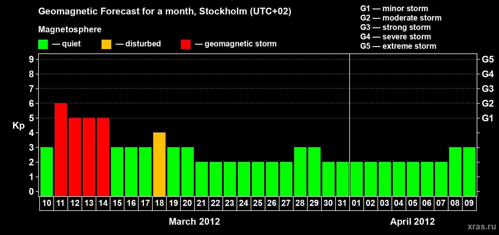 Geomagnetic storm forecast in Stockholm for Mar 10, 2012