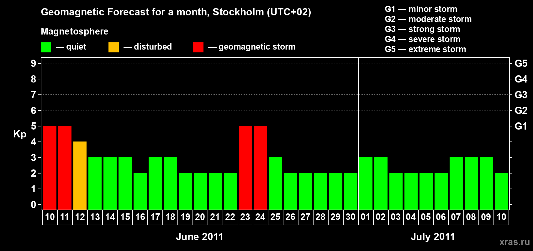 Geomagnetic storm forecast in Stockholm for Jun 10, 2011