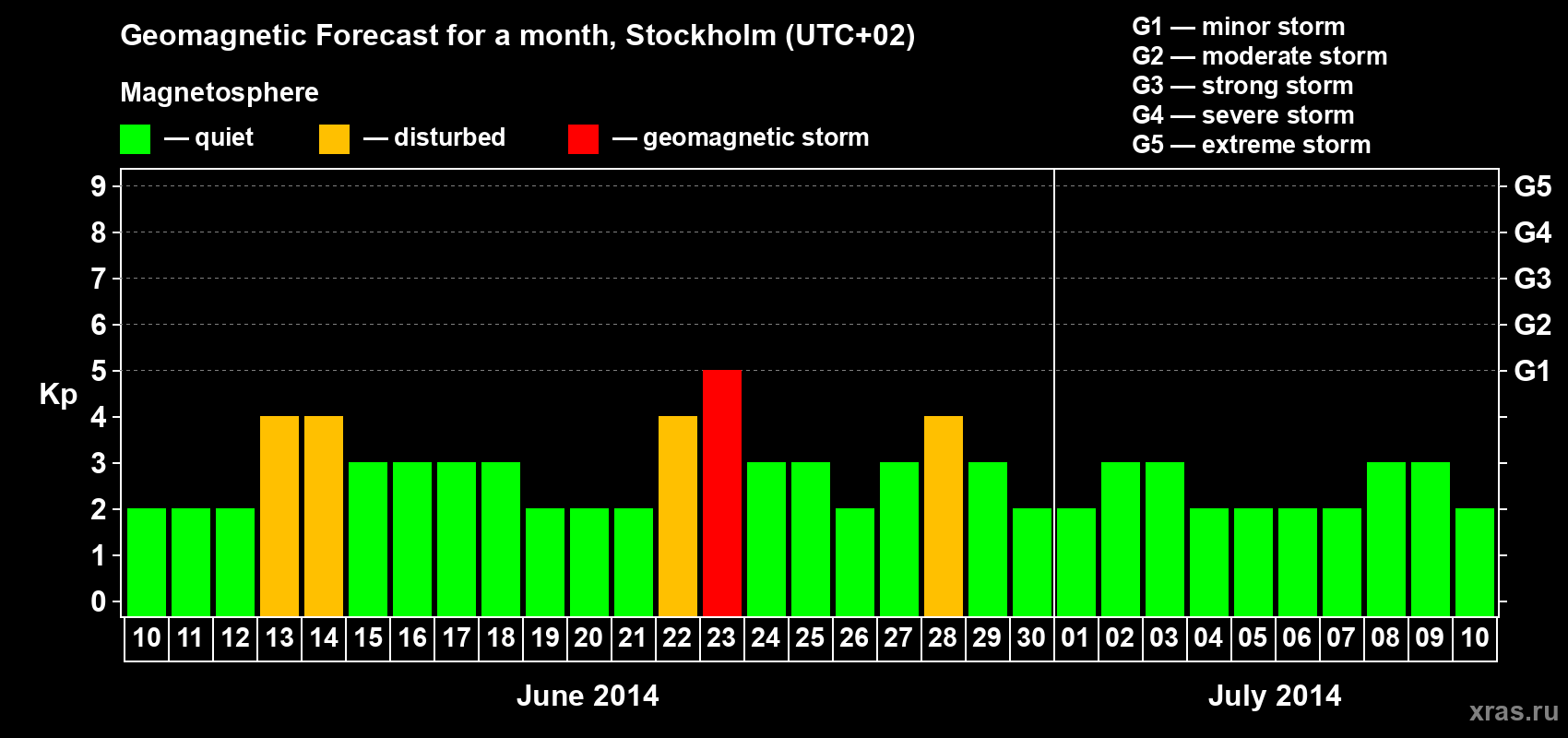 Geomagnetic storm forecast in Stockholm for Jun 10, 2014