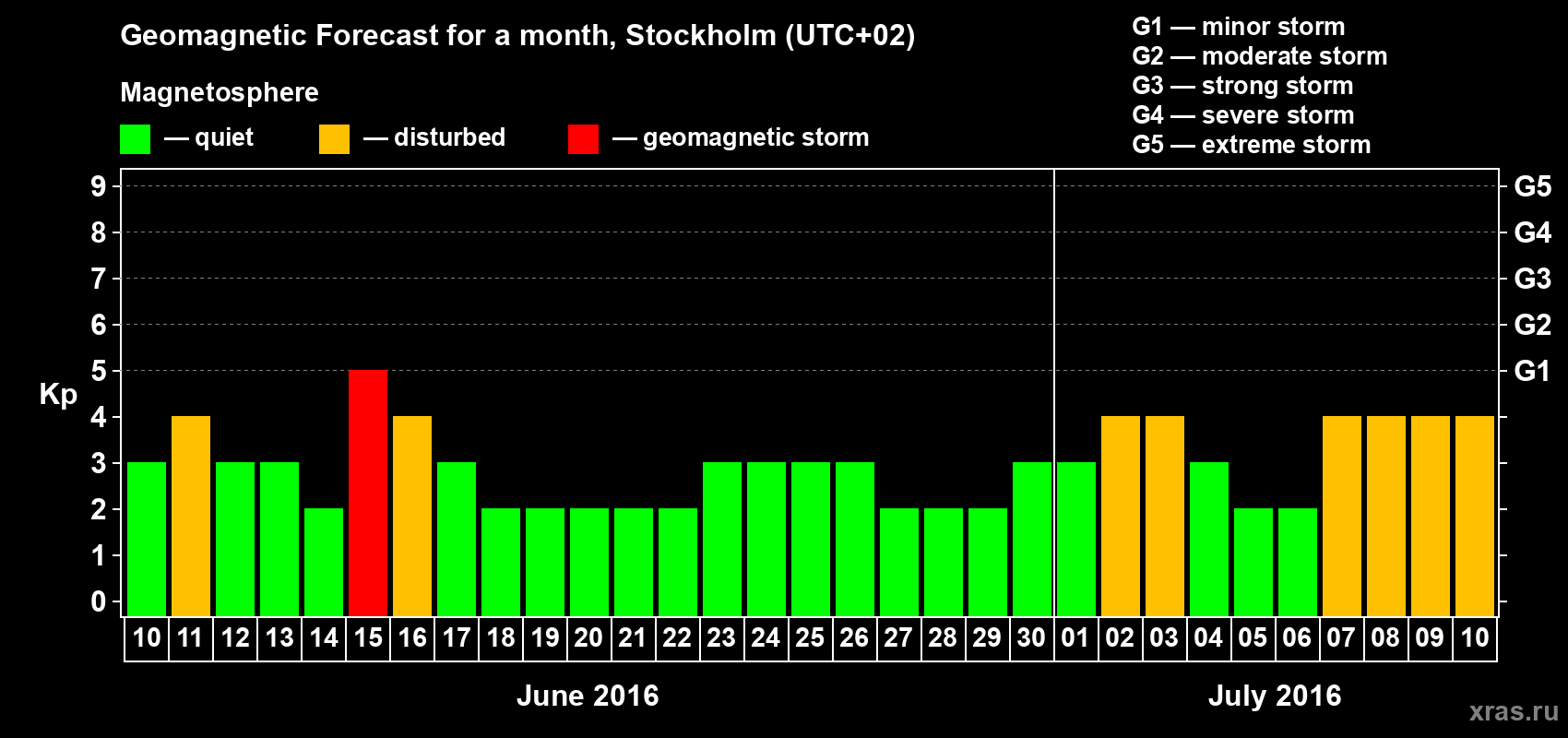 Geomagnetic storm forecast in Stockholm for Jun 10, 2016