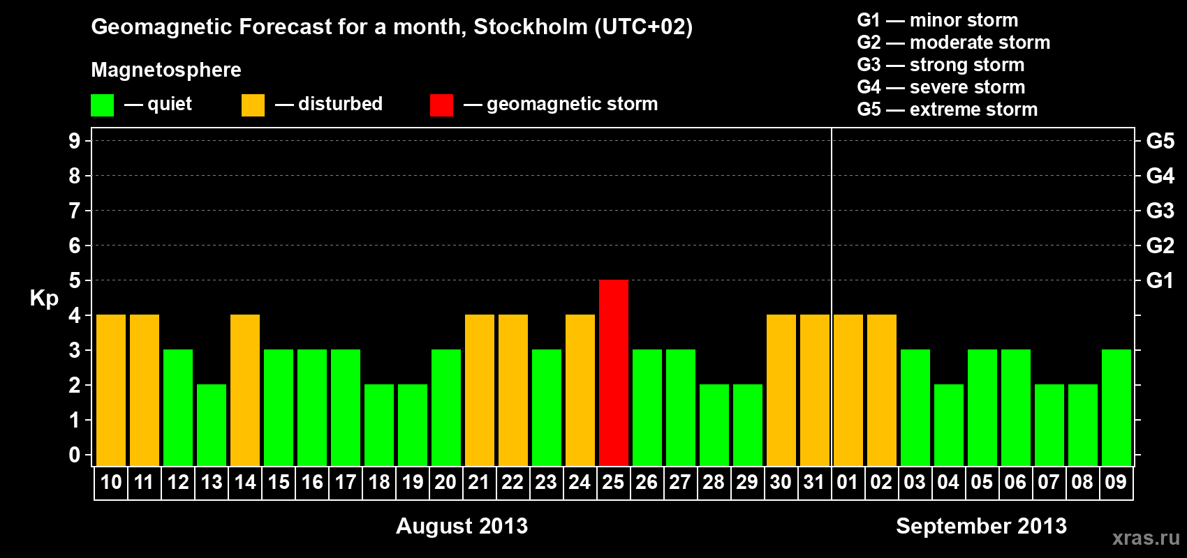 Geomagnetic storm forecast in Stockholm for Aug 10, 2013