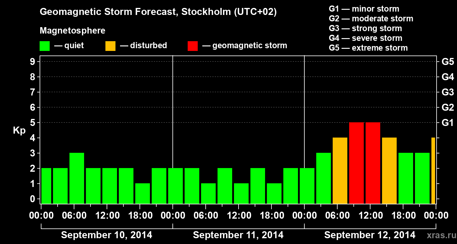 Geomagnetic storm forecast in Stockholm for Sep 10, 2014