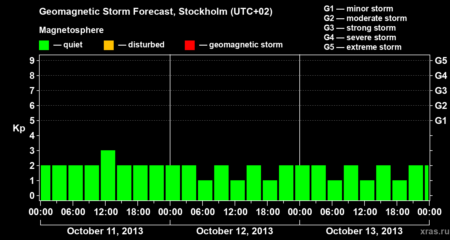 Geomagnetic storm forecast in Stockholm for Oct 11, 2013