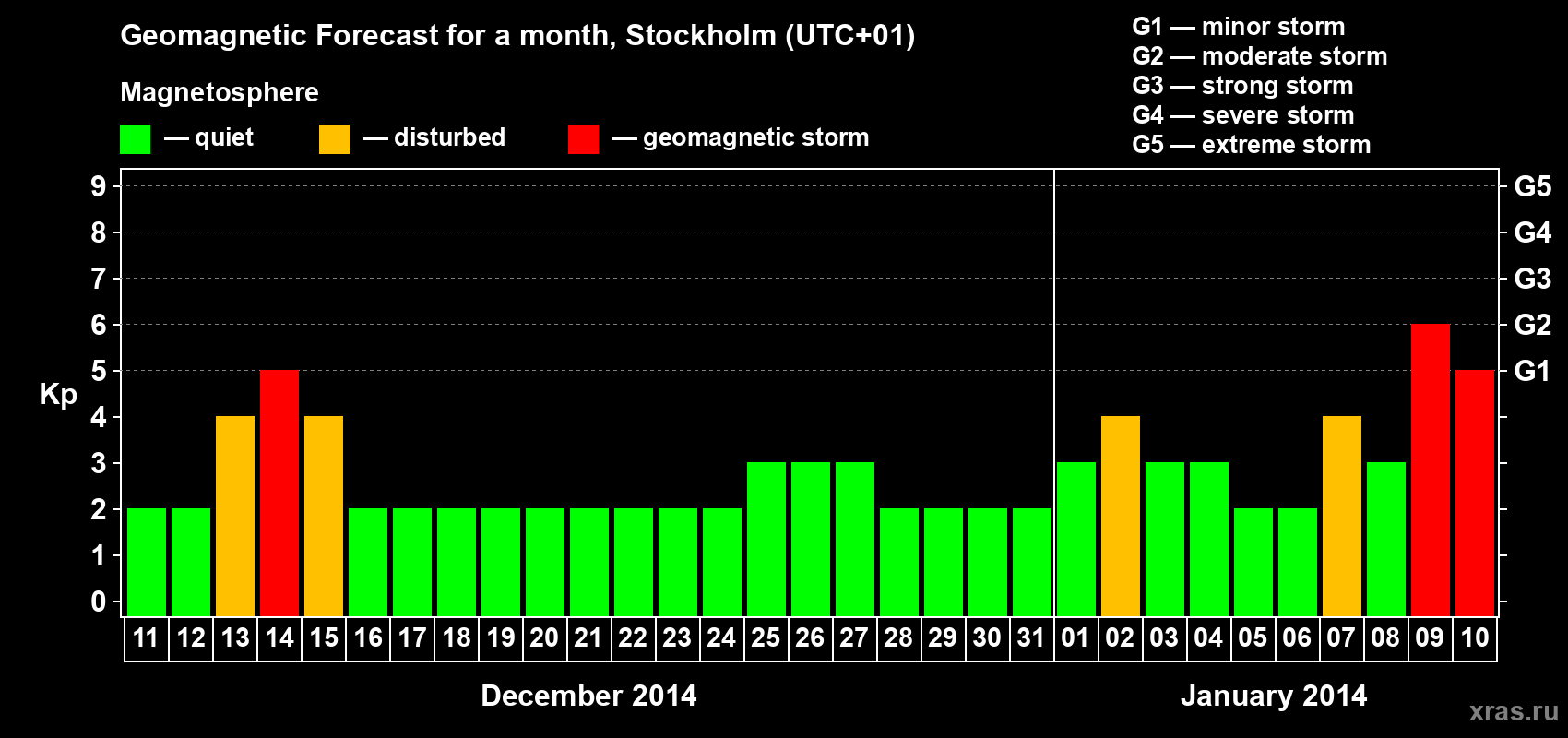 Geomagnetic storm forecast in Stockholm for Dec 11, 2013