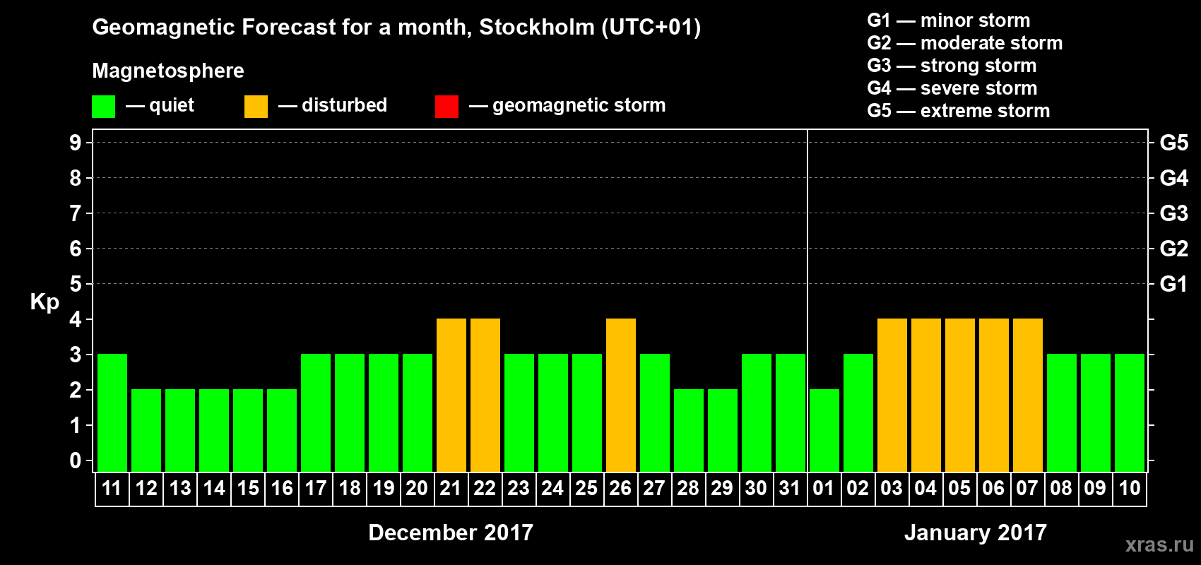 Geomagnetic storm forecast in Stockholm for Dec 11, 2016