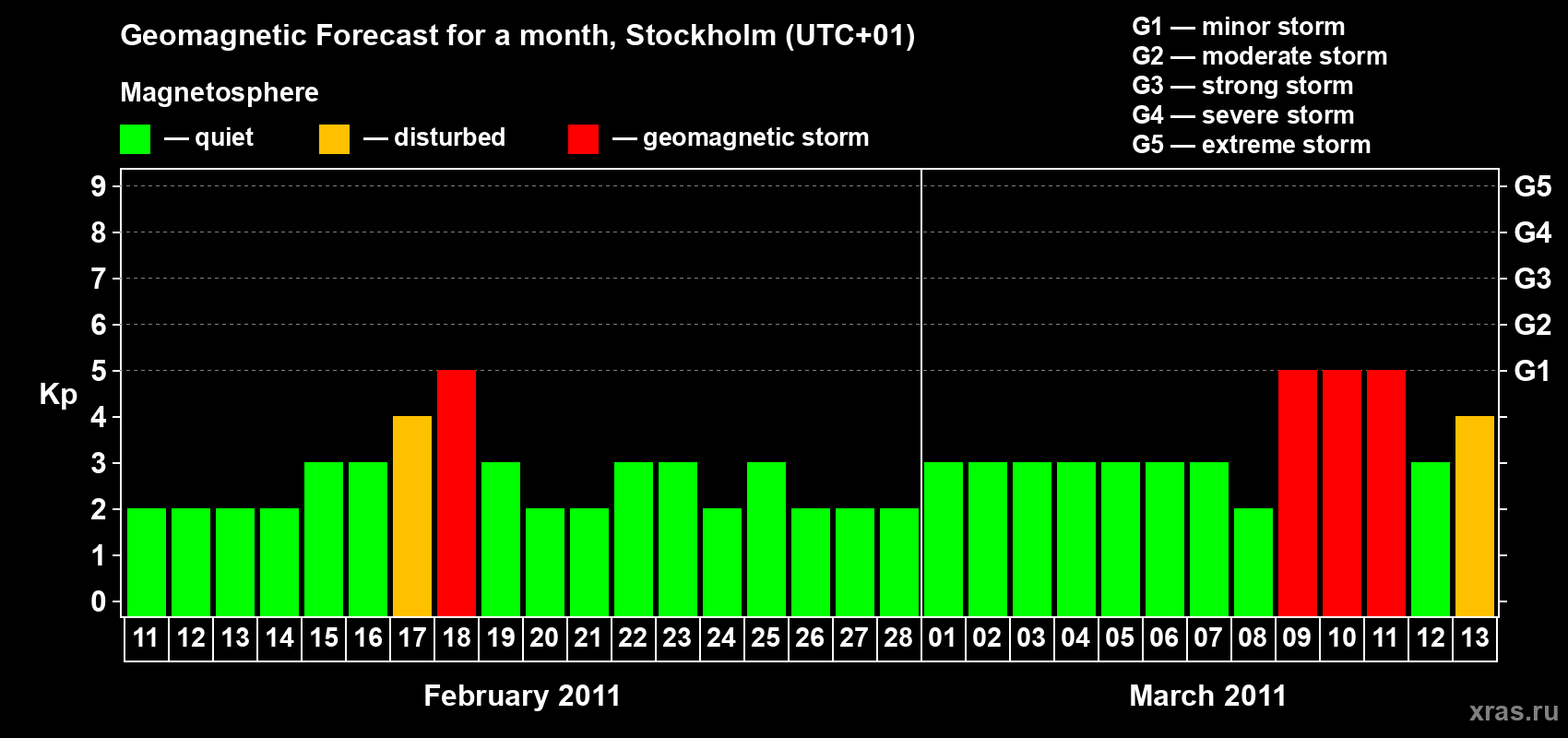 Geomagnetic storm forecast in Stockholm for Feb 11, 2011