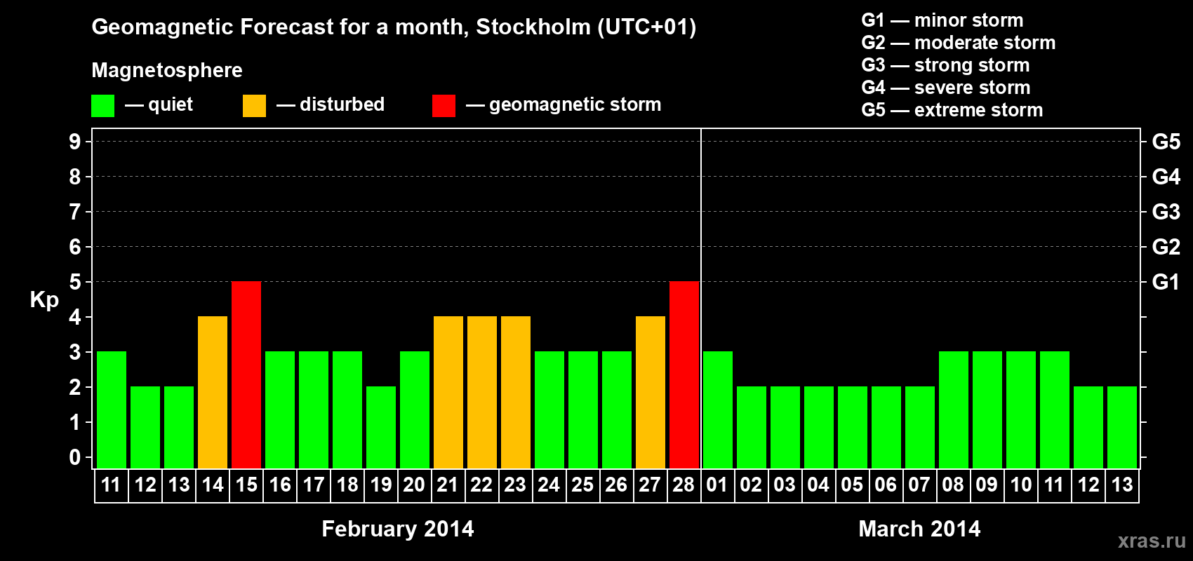 Geomagnetic storm forecast in Stockholm for Feb 11, 2014
