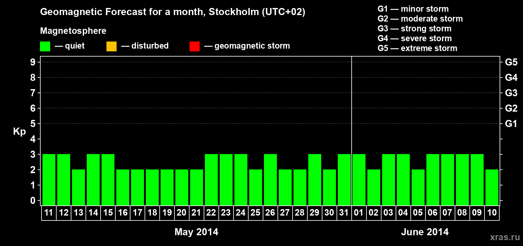 Geomagnetic storm forecast in Stockholm for May 11, 2014