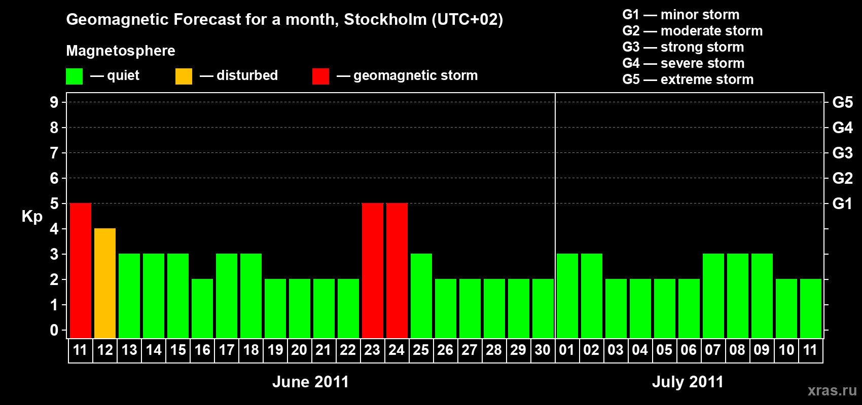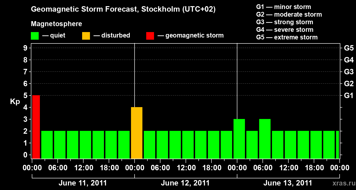 Geomagnetic storm forecast in Stockholm for Jun 11, 2011