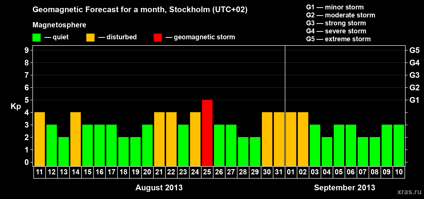 Geomagnetic storm forecast in Stockholm for Aug 11, 2013