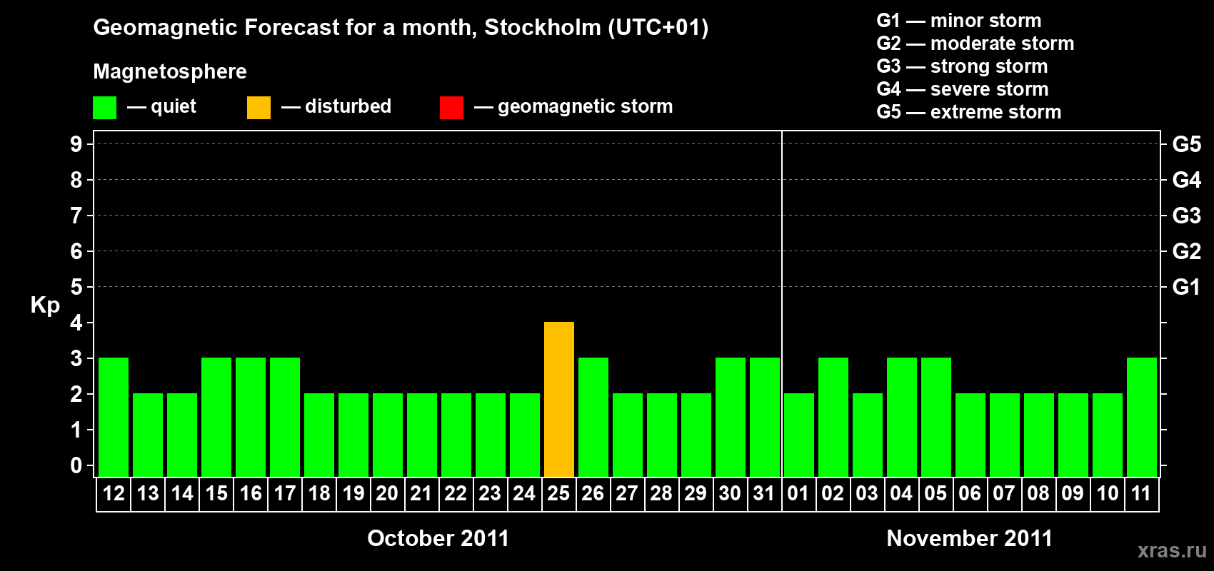 Geomagnetic storm forecast in Stockholm for Oct 12, 2011