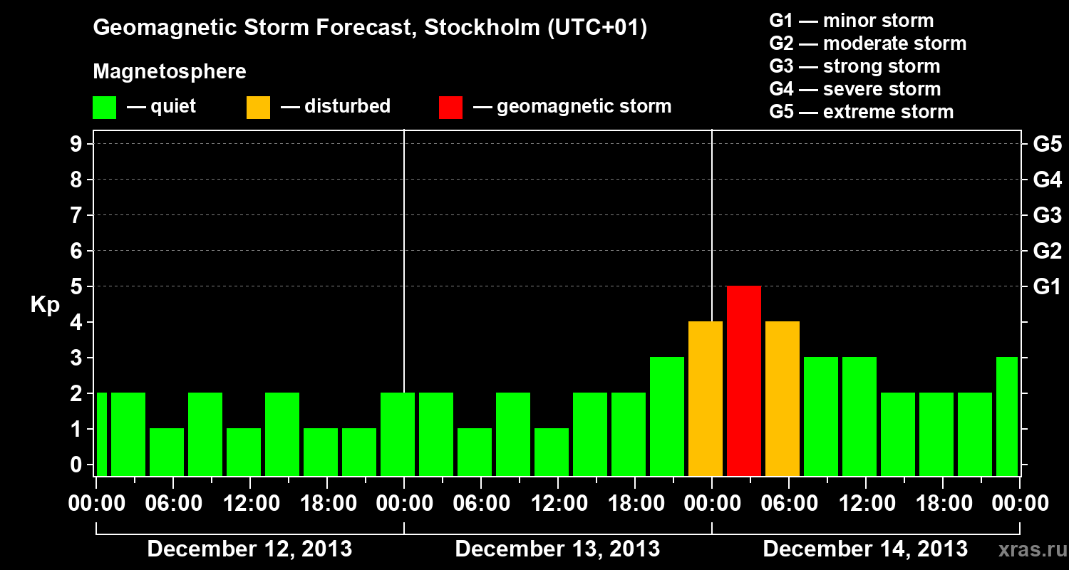 Geomagnetic storm forecast in Stockholm for Dec 12, 2013