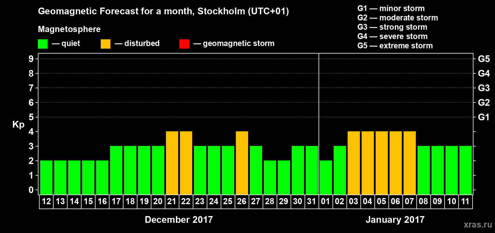 Geomagnetic storm forecast in Stockholm for Dec 12, 2016