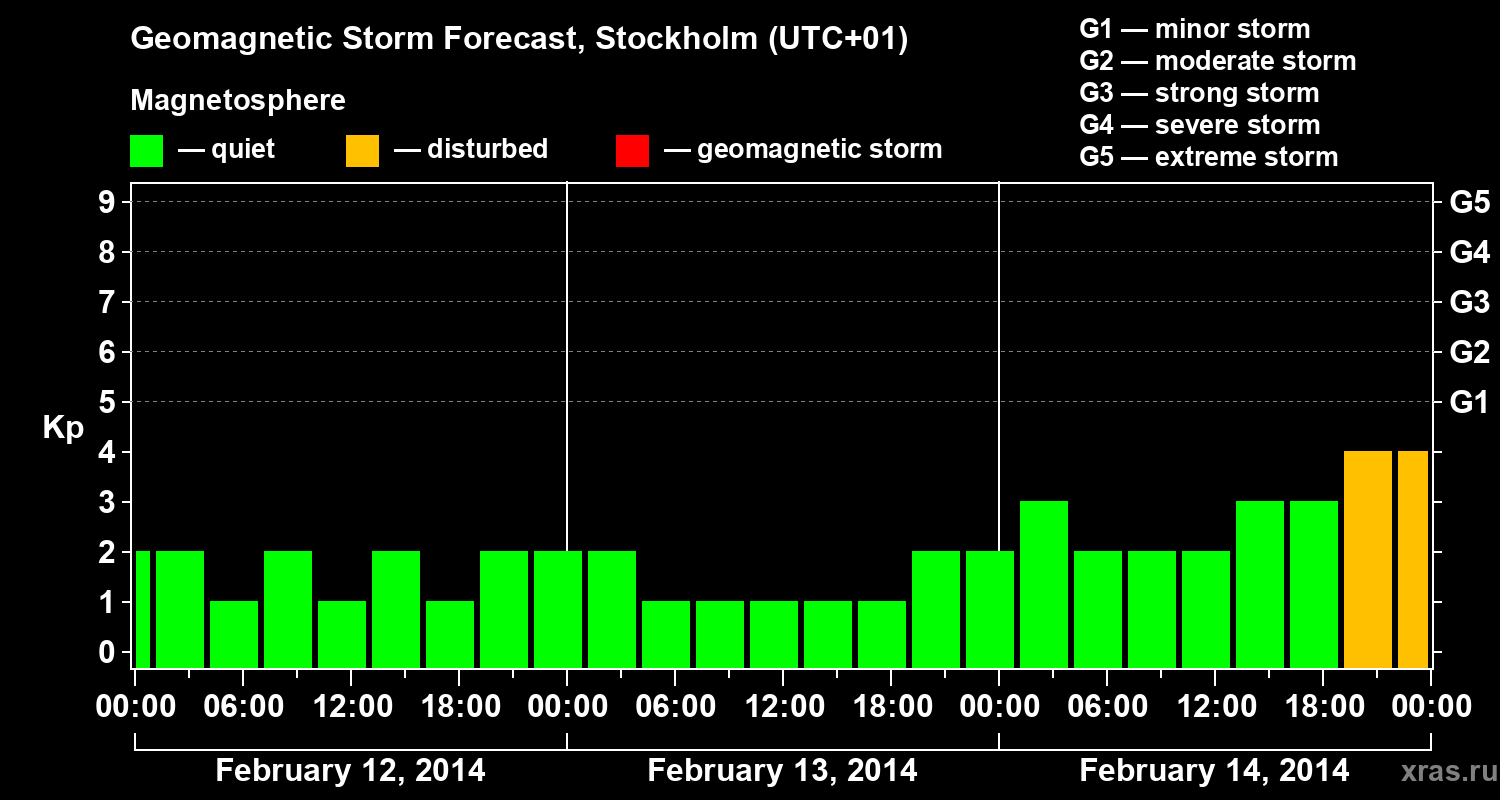 Geomagnetic storm forecast in Stockholm for Feb 12, 2014