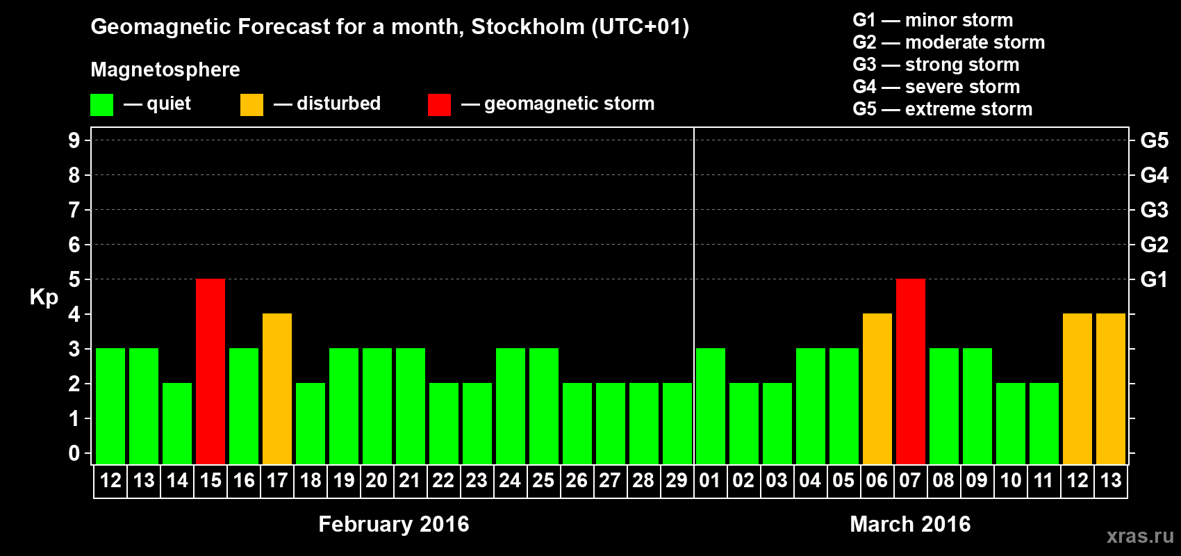 Geomagnetic storm forecast in Stockholm for Feb 12, 2016
