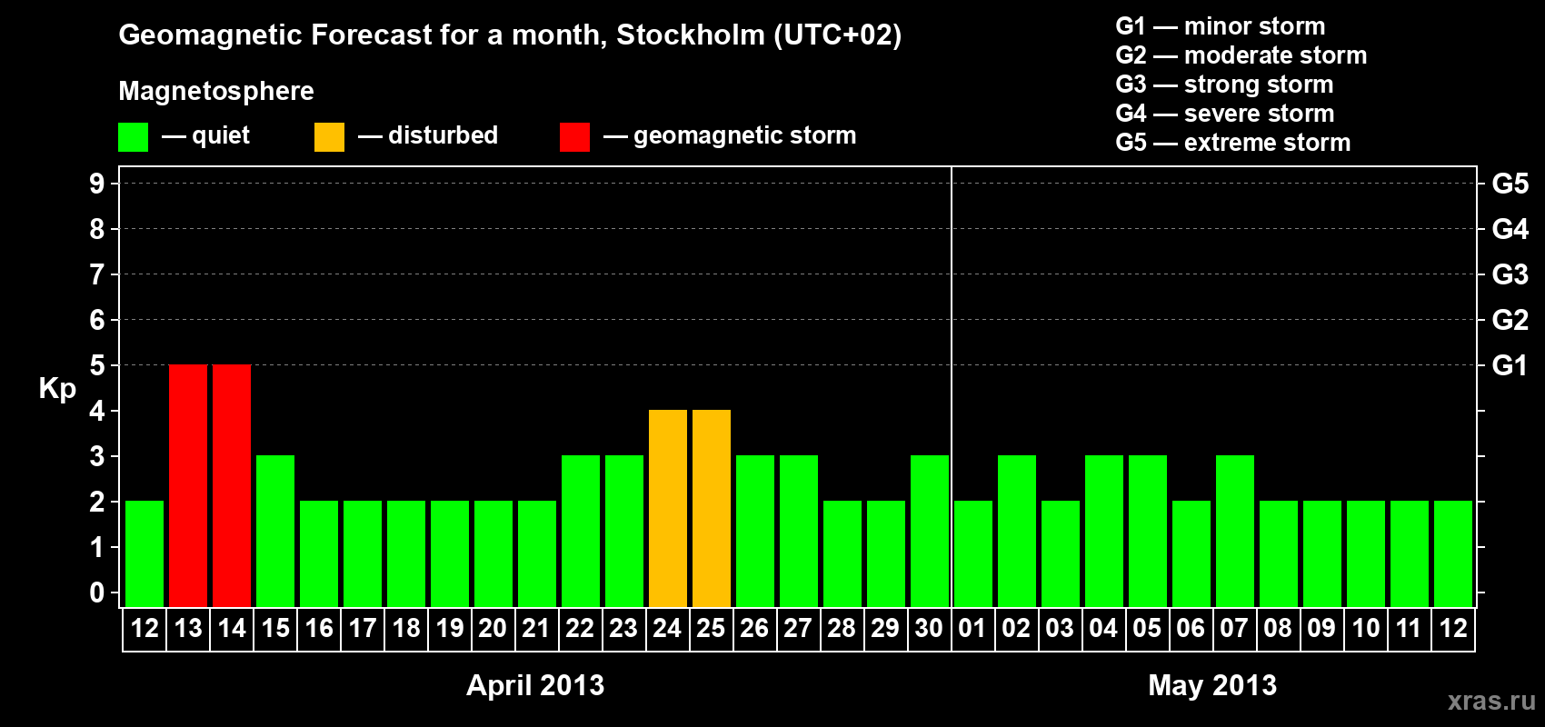 Geomagnetic storm forecast in Stockholm for Apr 12, 2013