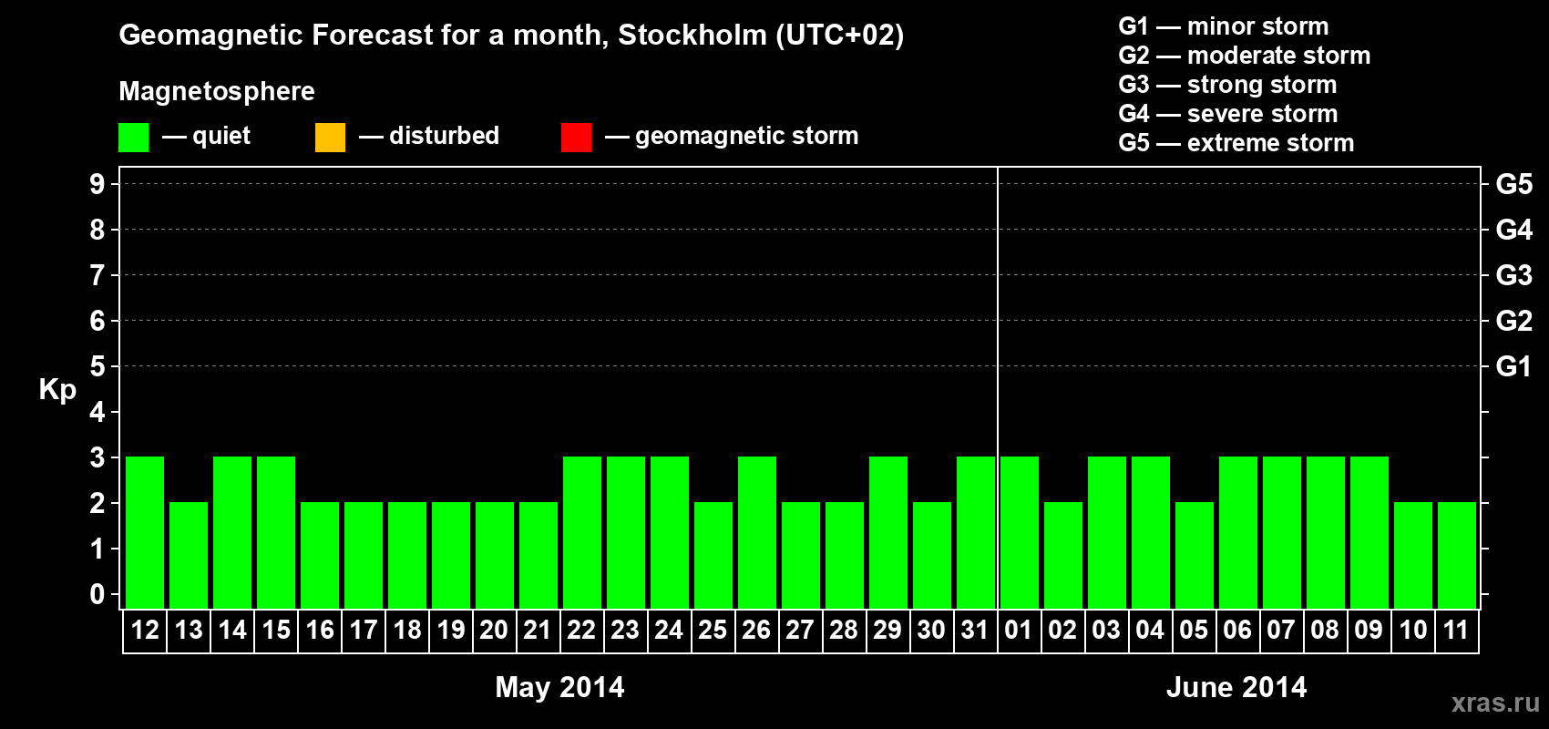 Geomagnetic storm forecast in Stockholm for May 12, 2014