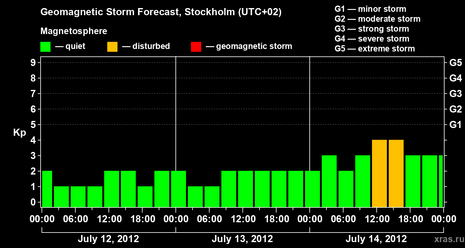 Geomagnetic storm forecast in Stockholm for Jul 12, 2012