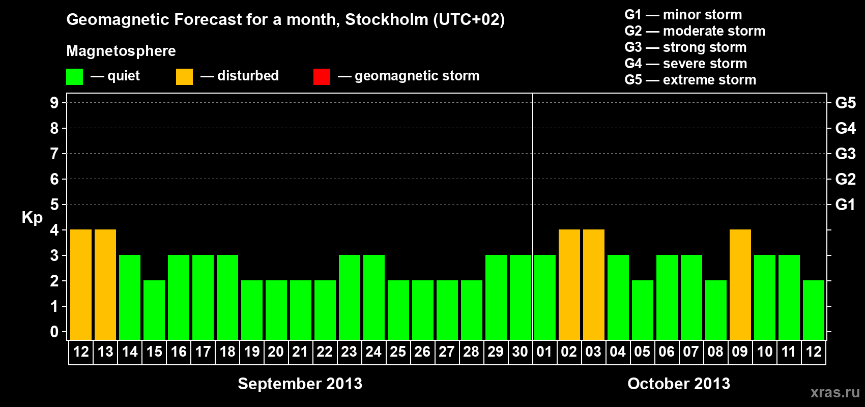 Geomagnetic storm forecast in Stockholm for Sep 12, 2013