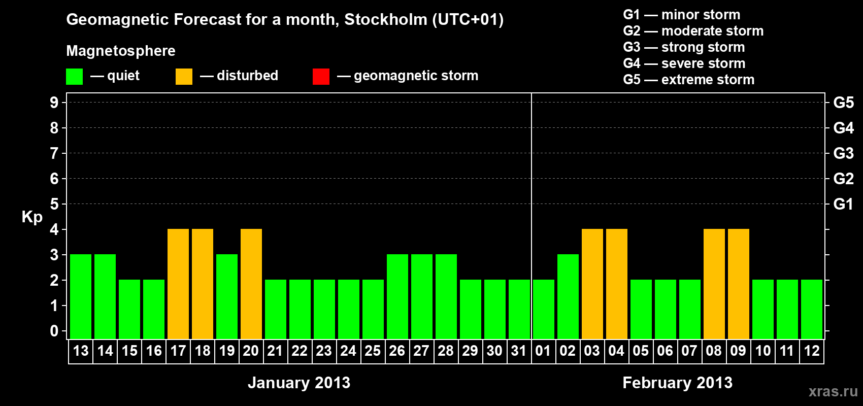 Geomagnetic storm forecast in Stockholm for Jan 13, 2013