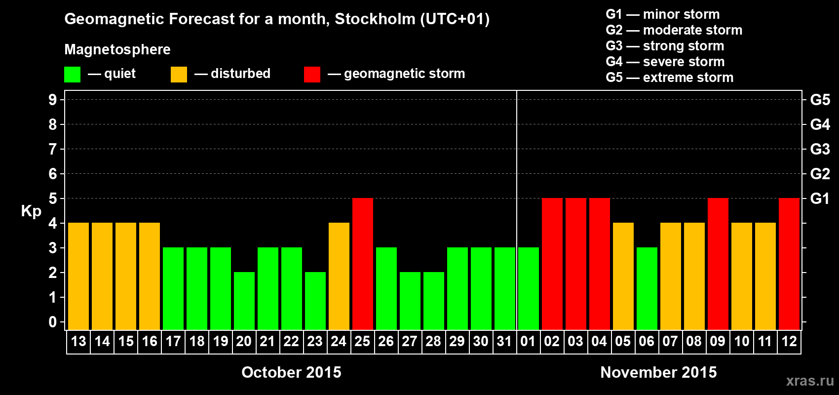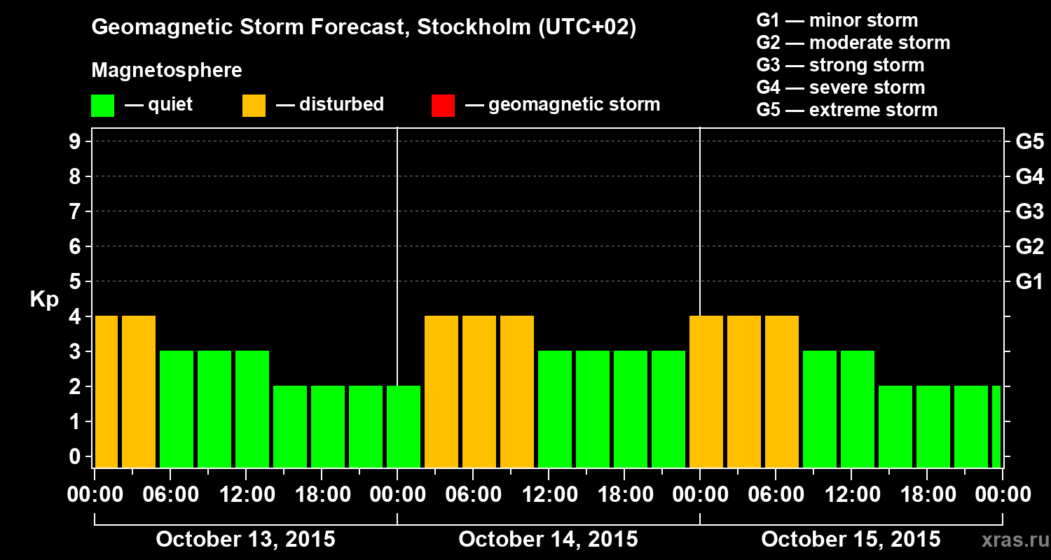 Geomagnetic storm forecast in Stockholm for Oct 13, 2015