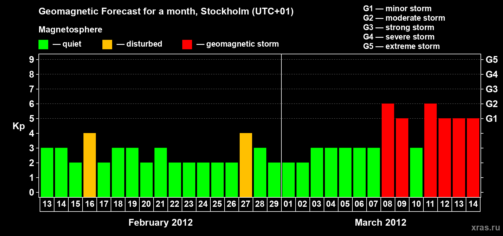 Geomagnetic storm forecast in Stockholm for Feb 13, 2012