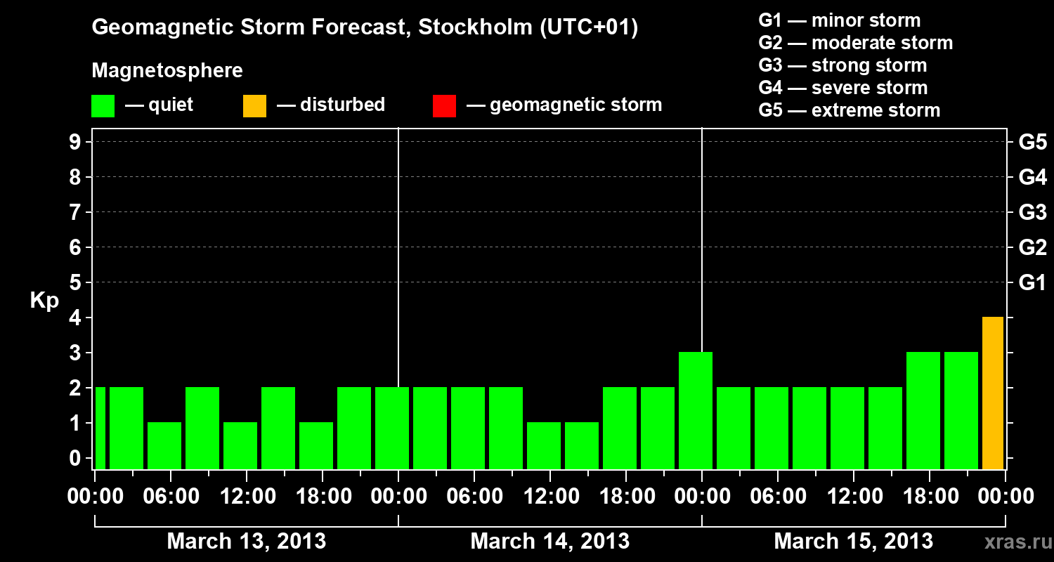 Geomagnetic storm forecast in Stockholm for Mar 13, 2013