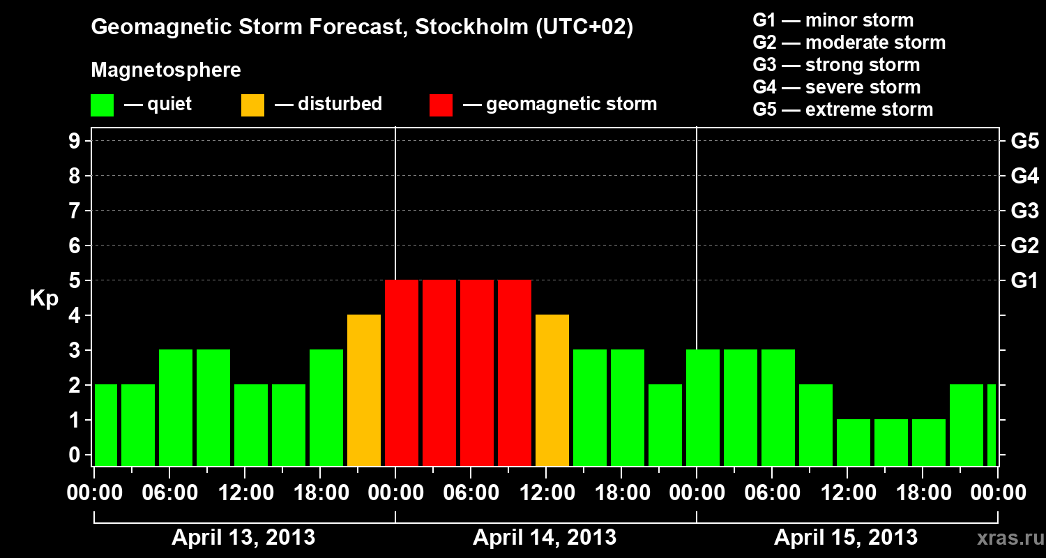 Geomagnetic storm forecast in Stockholm for Apr 13, 2013