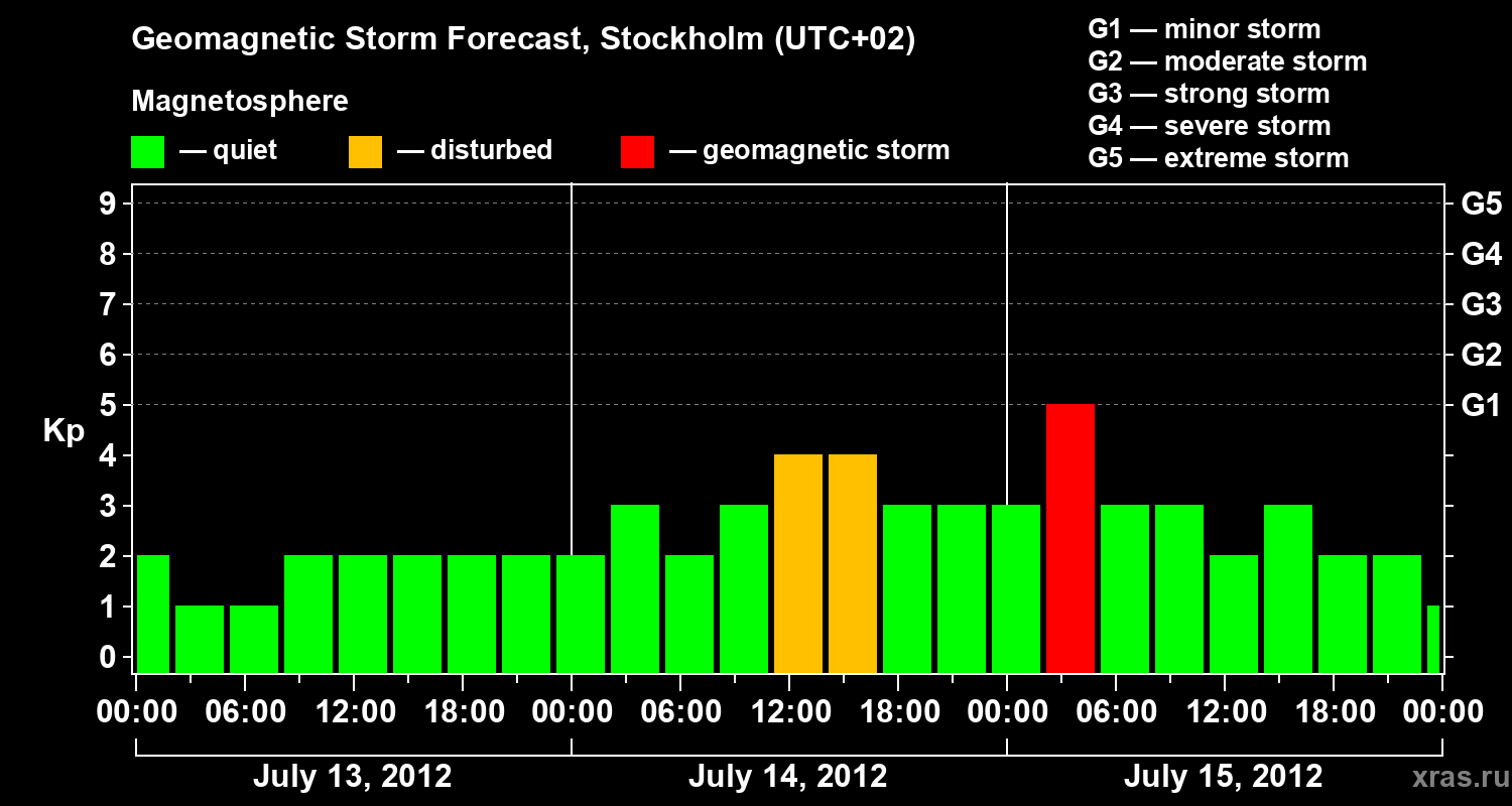 Geomagnetic storm forecast in Stockholm for Jul 13, 2012