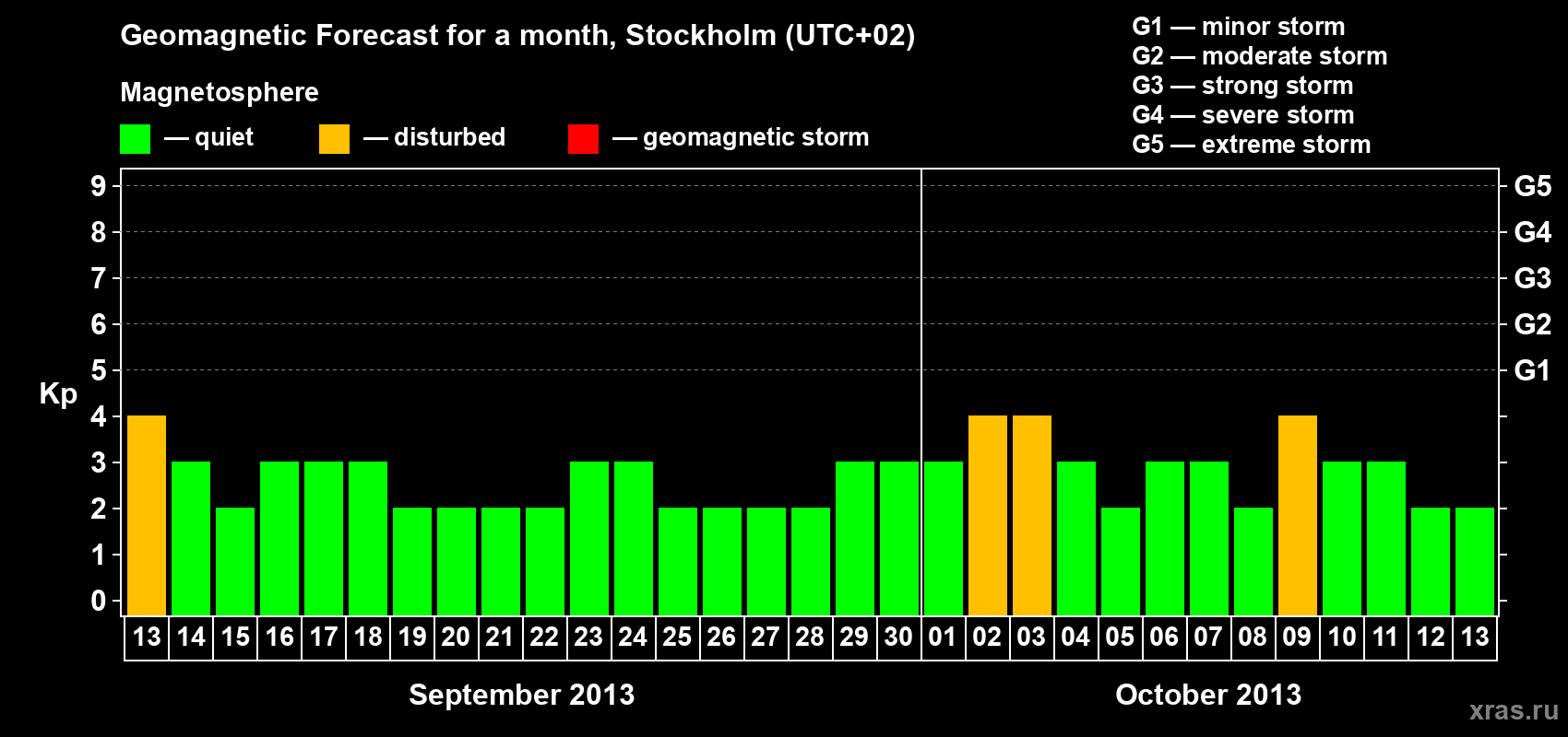 Geomagnetic storm forecast in Stockholm for Sep 13, 2013