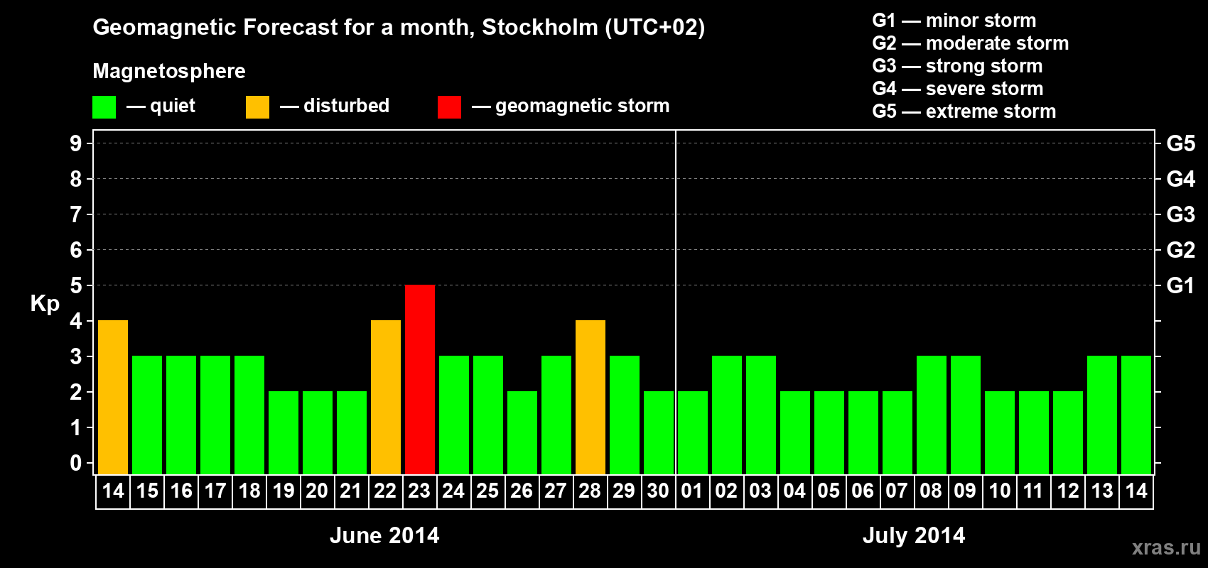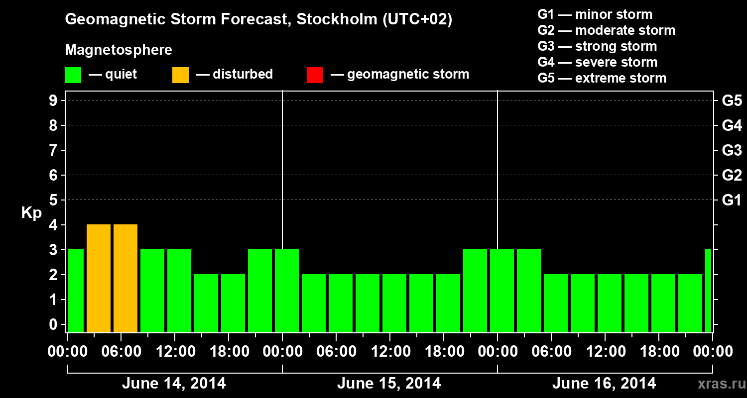 Geomagnetic storm forecast in Stockholm for Jun 14, 2014