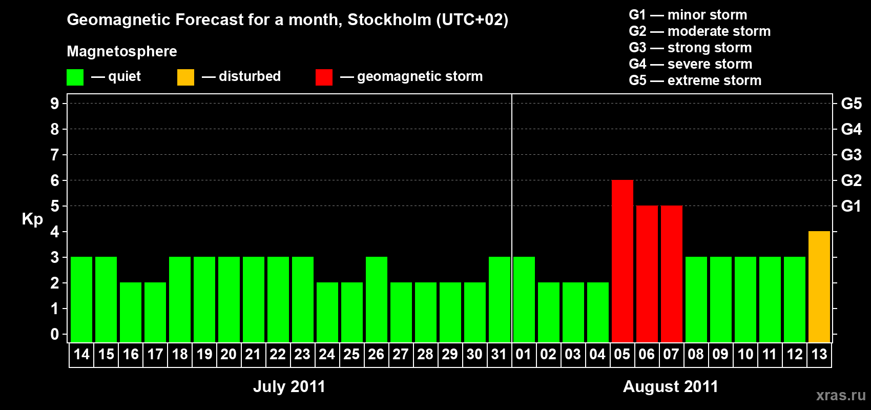 Geomagnetic storm forecast in Stockholm for Jul 14, 2011
