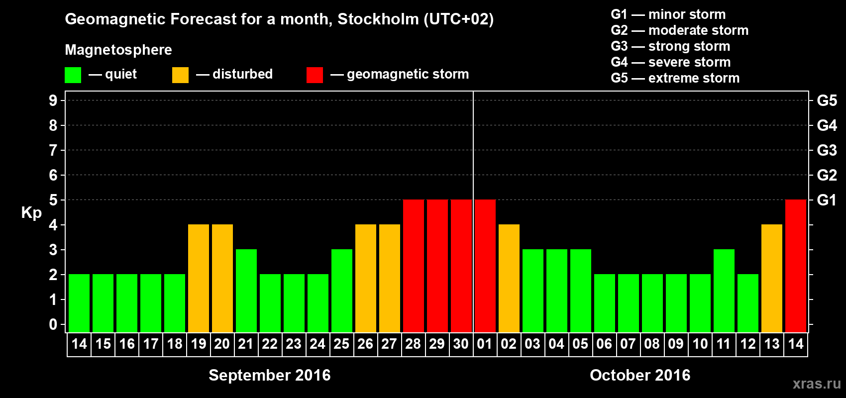 Geomagnetic storm forecast in Stockholm for Sep 14, 2016