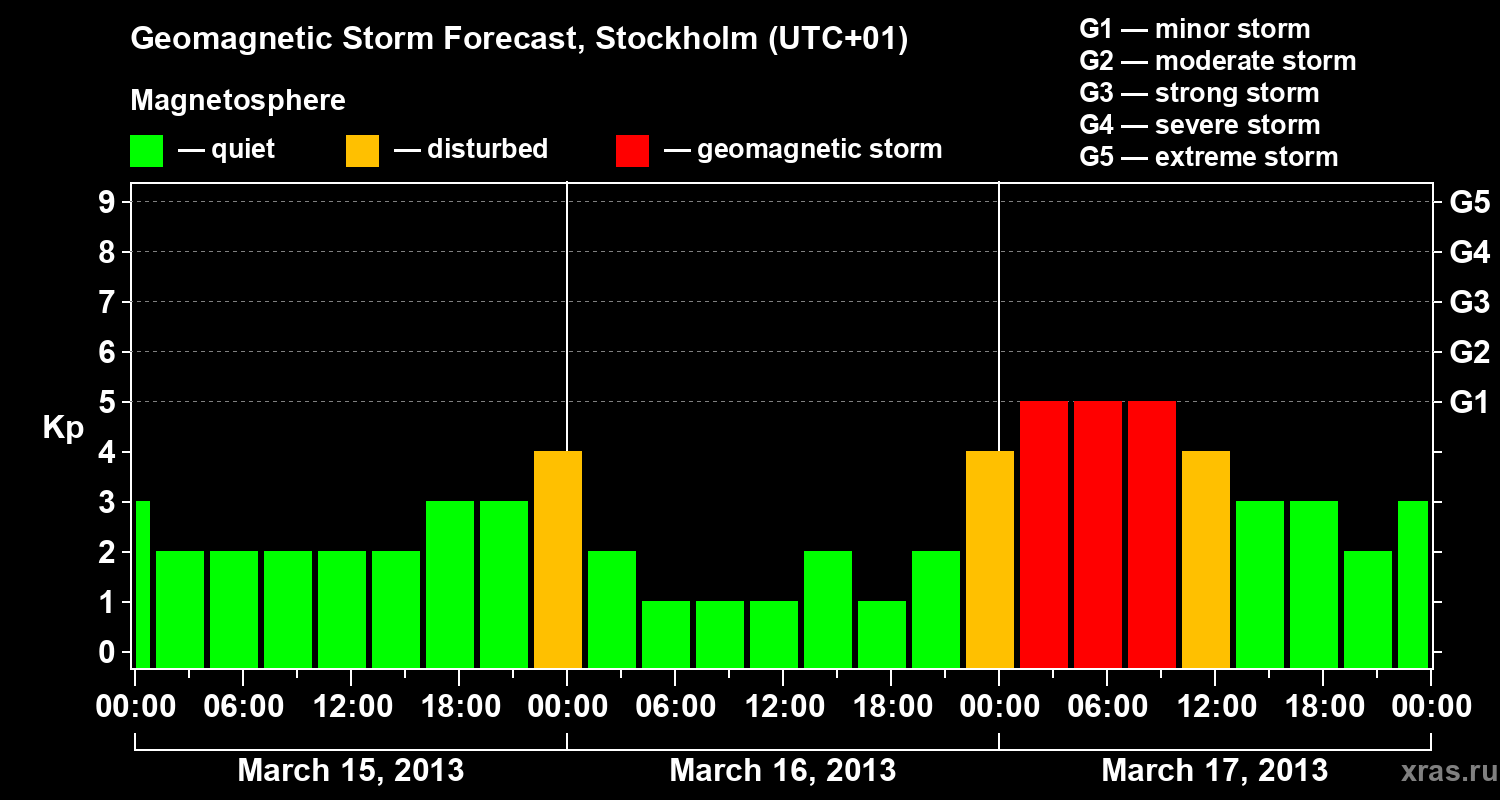 Geomagnetic storm forecast in Stockholm for Mar 15, 2013