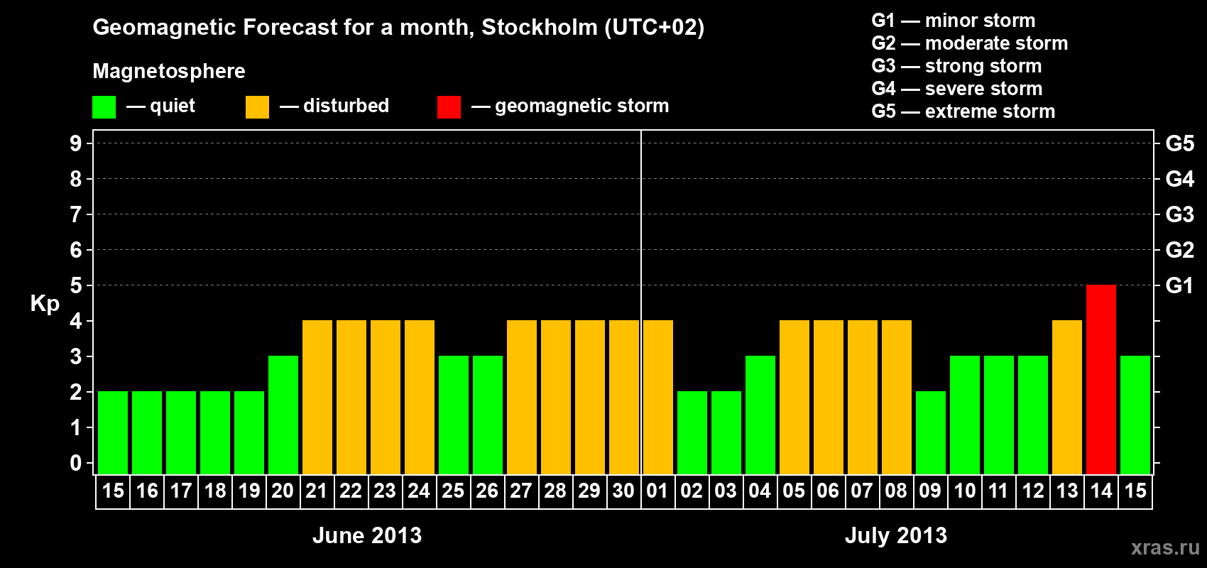 Geomagnetic storm forecast in Stockholm for Jun 15, 2013