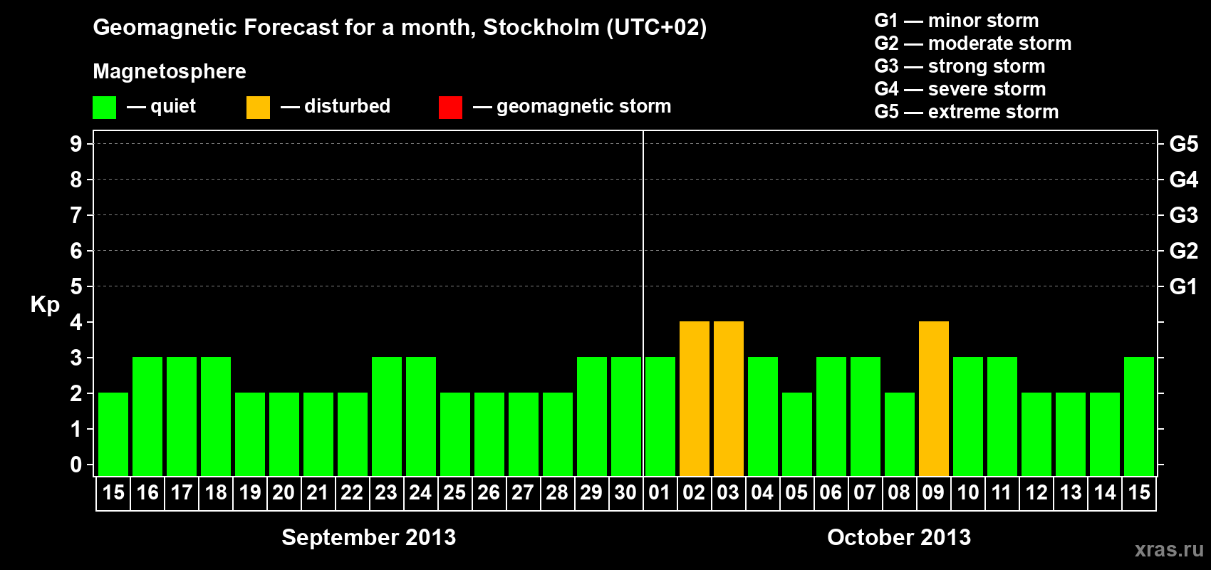 Geomagnetic storm forecast in Stockholm for Sep 15, 2013