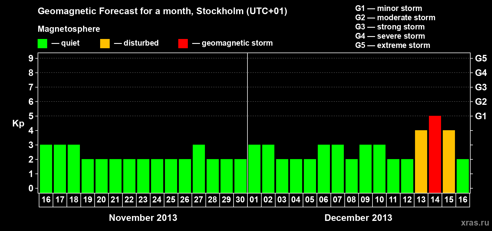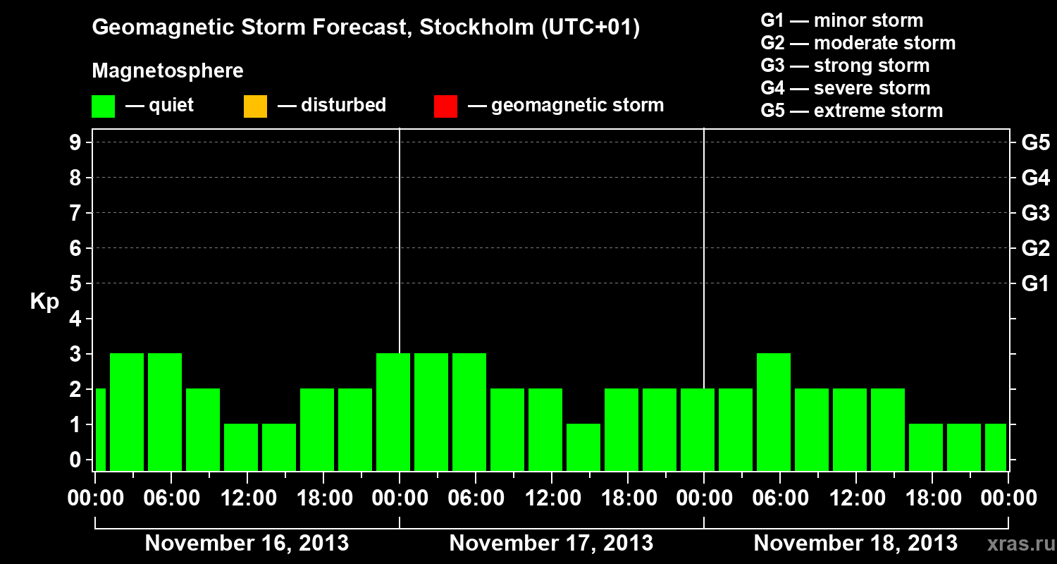 Geomagnetic storm forecast in Stockholm for Nov 16, 2013