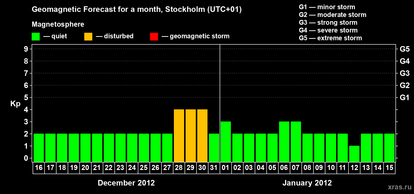 Geomagnetic storm forecast in Stockholm for Dec 16, 2011