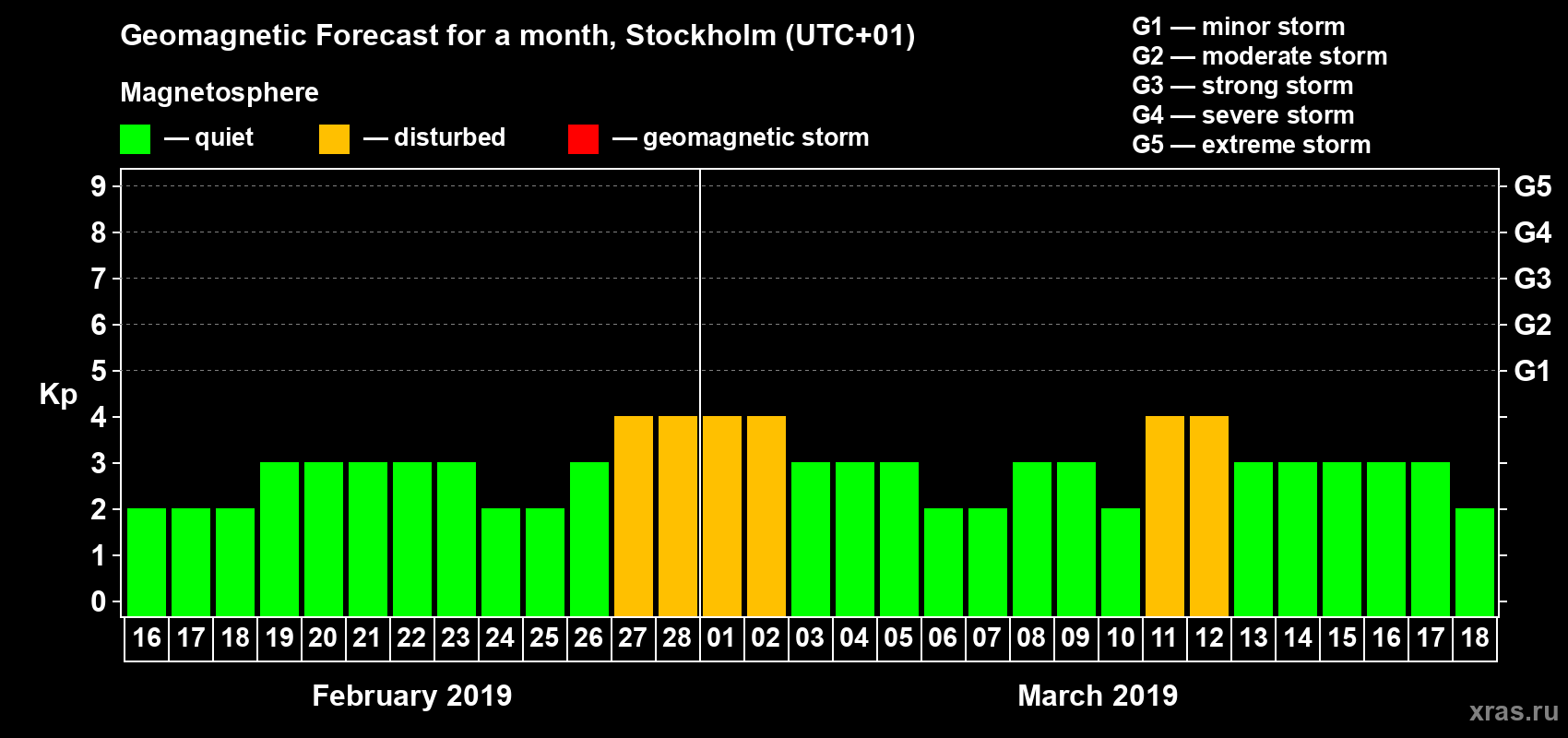 Geomagnetic activity forecast in Stockholm — Feb 16, 2019